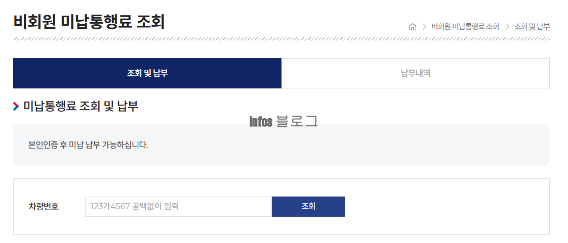 미납 통행료 납부는 고속도로 홈페이지에서 미납 조회 후 납부가 가능합니다.
